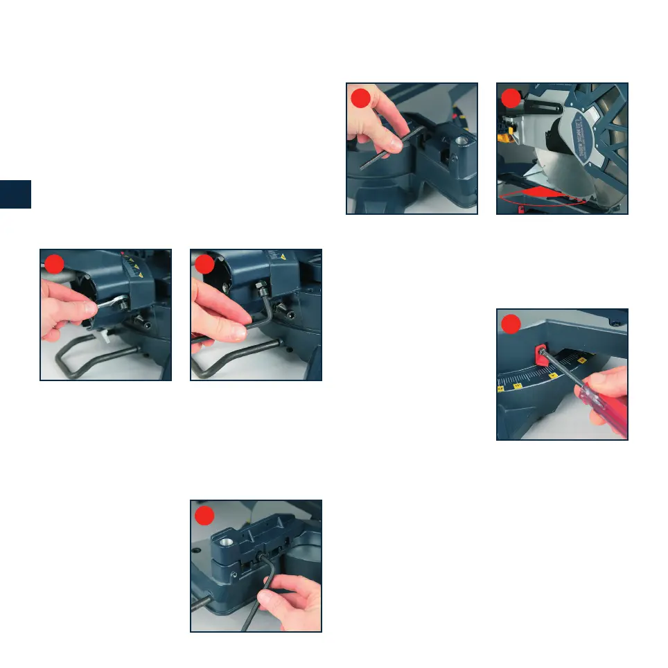 De stelschroeven voor de 45º afschuining (33 en 34)