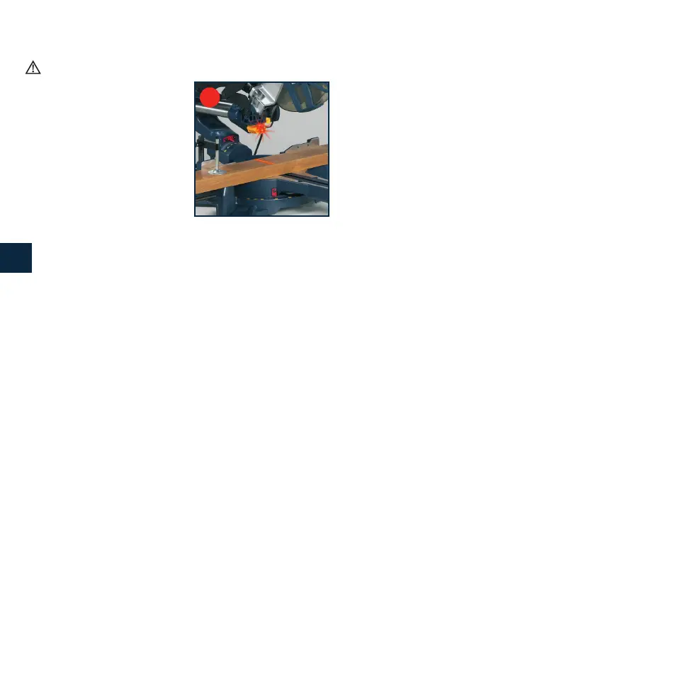 rechts vom Sägeblatt zu schneiden, die rechte Laserlinie mit