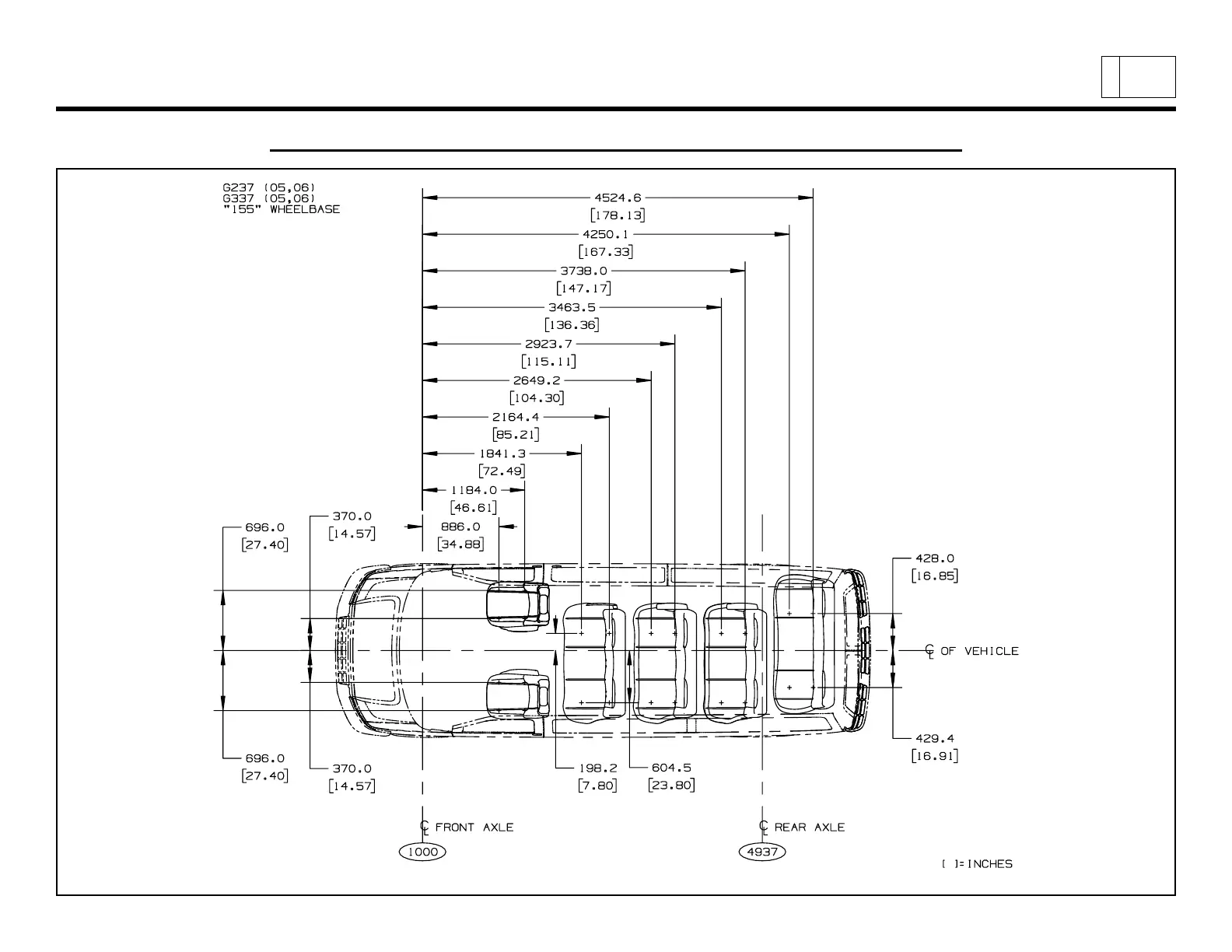 GMC G/H Van - Seating Tie down Locations, 15 Passenger, 155 WB