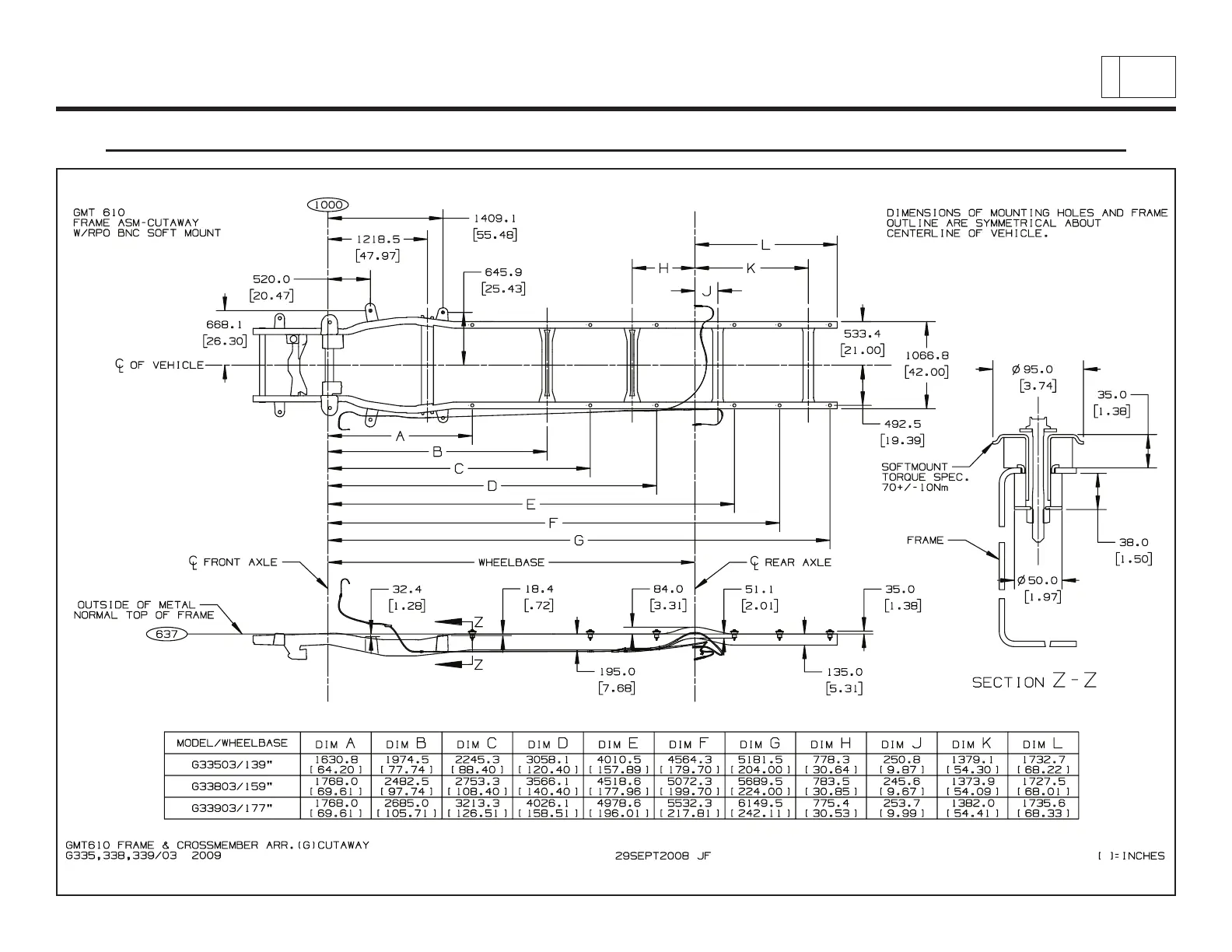 Frame and Crossmember Arrangement, 139”/159”/177” WB G Cutaway (03)
