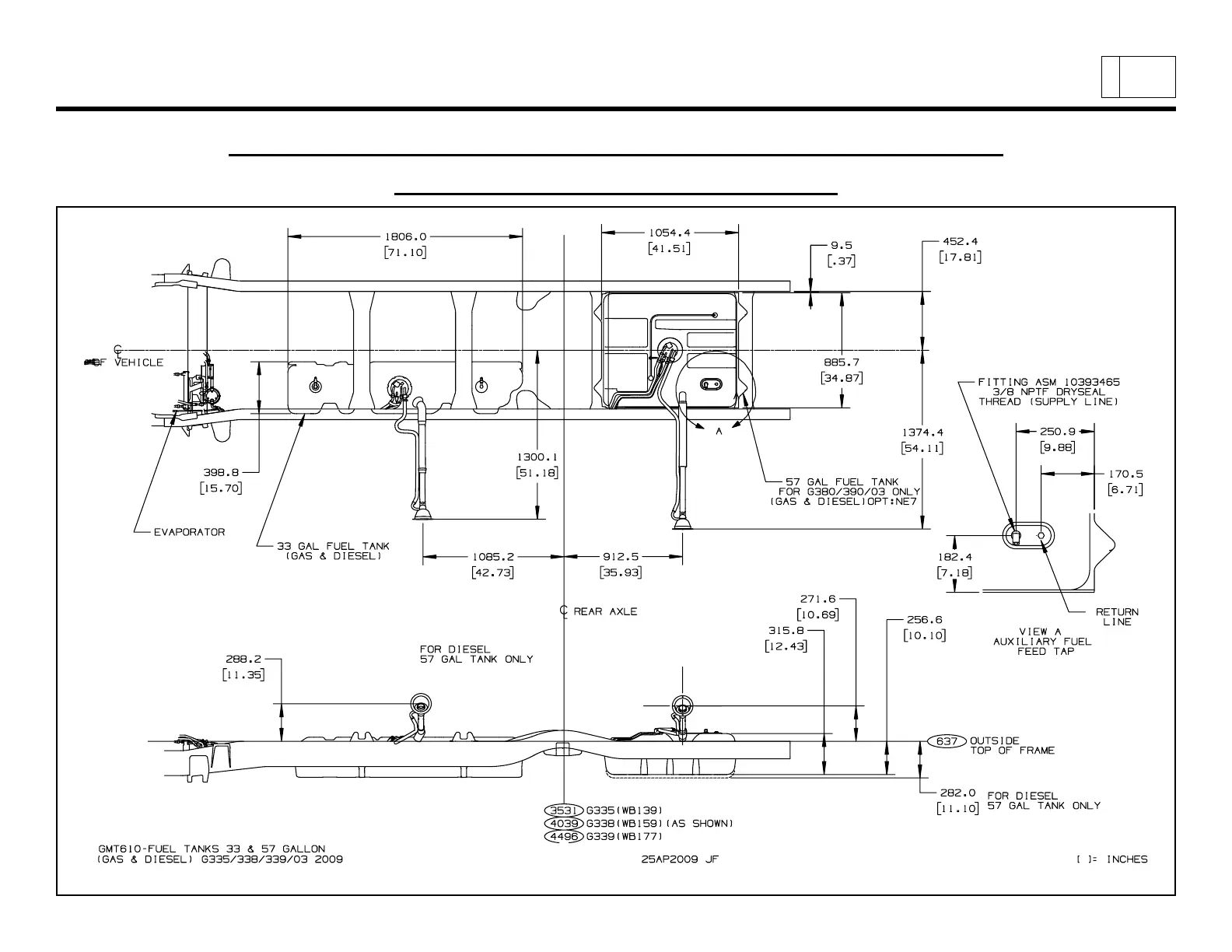 GMC G/H Van - Fuel Tanks - G-Cutaways, 35 Gallon MID-Ship Tank & 57 Gallon (Opt. NE7) Mtd. Behind Rear Axle