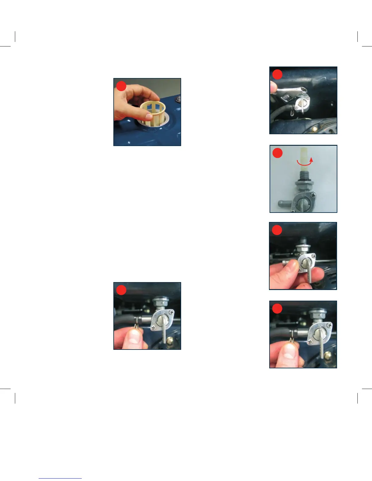 1. Completely empty the tank of fuel. Ensure the fuel tap