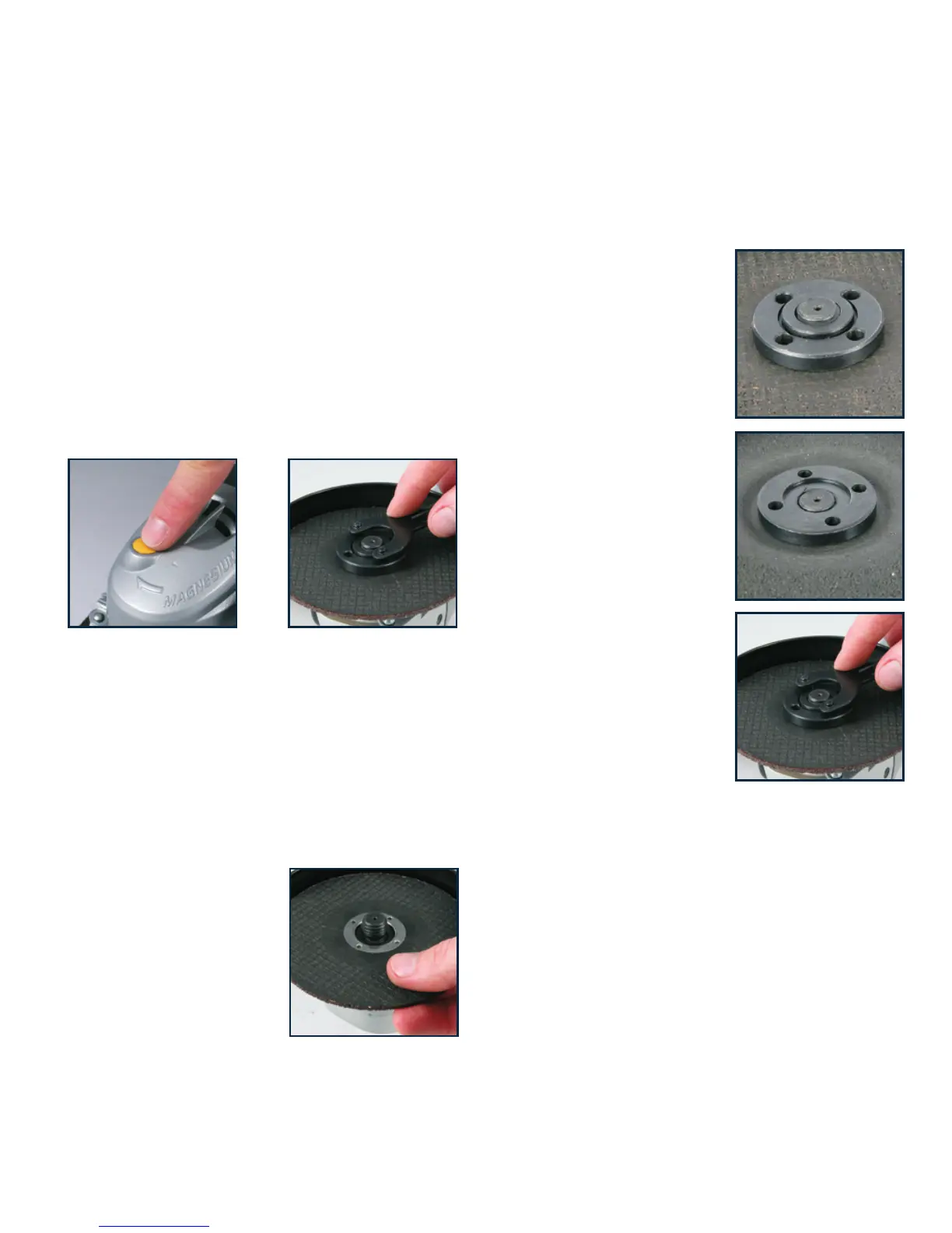 1. Turn the angle grinder on to its back and press the
