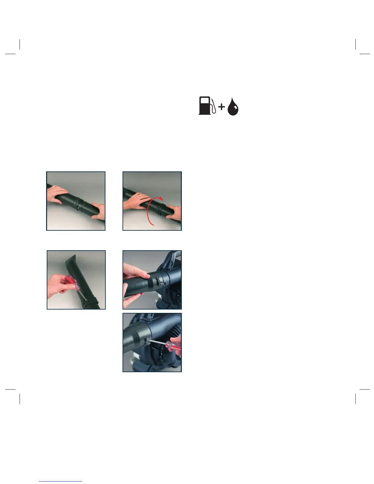 WARNING. Never use any type of pre-mixed fuel/oil direct