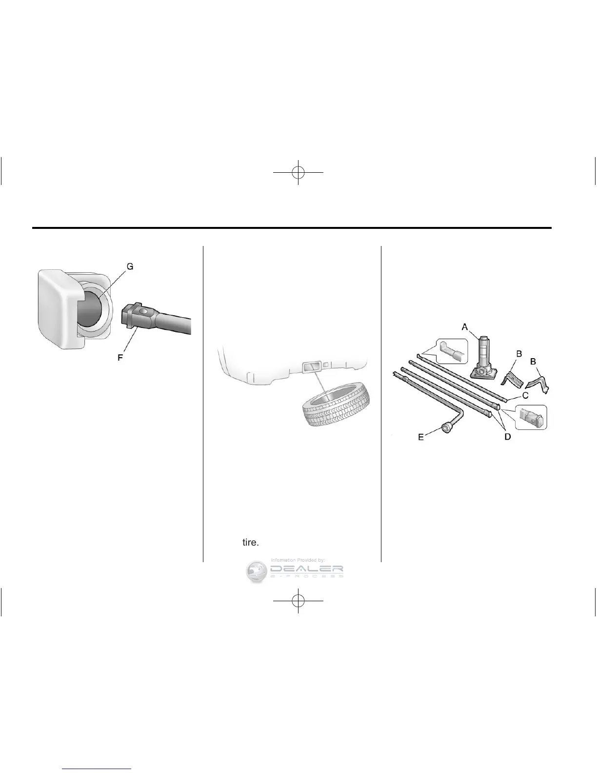 the jack (A), the wheel blocks (B),