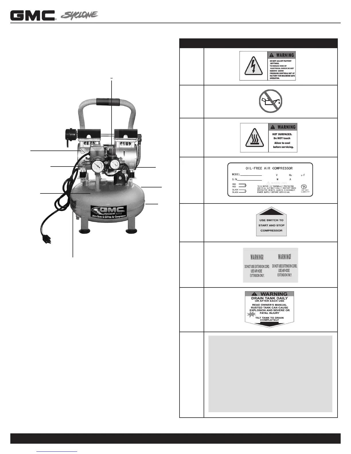 3. If the air compressor needs repair or becomes damaged, turn off the power and drain the