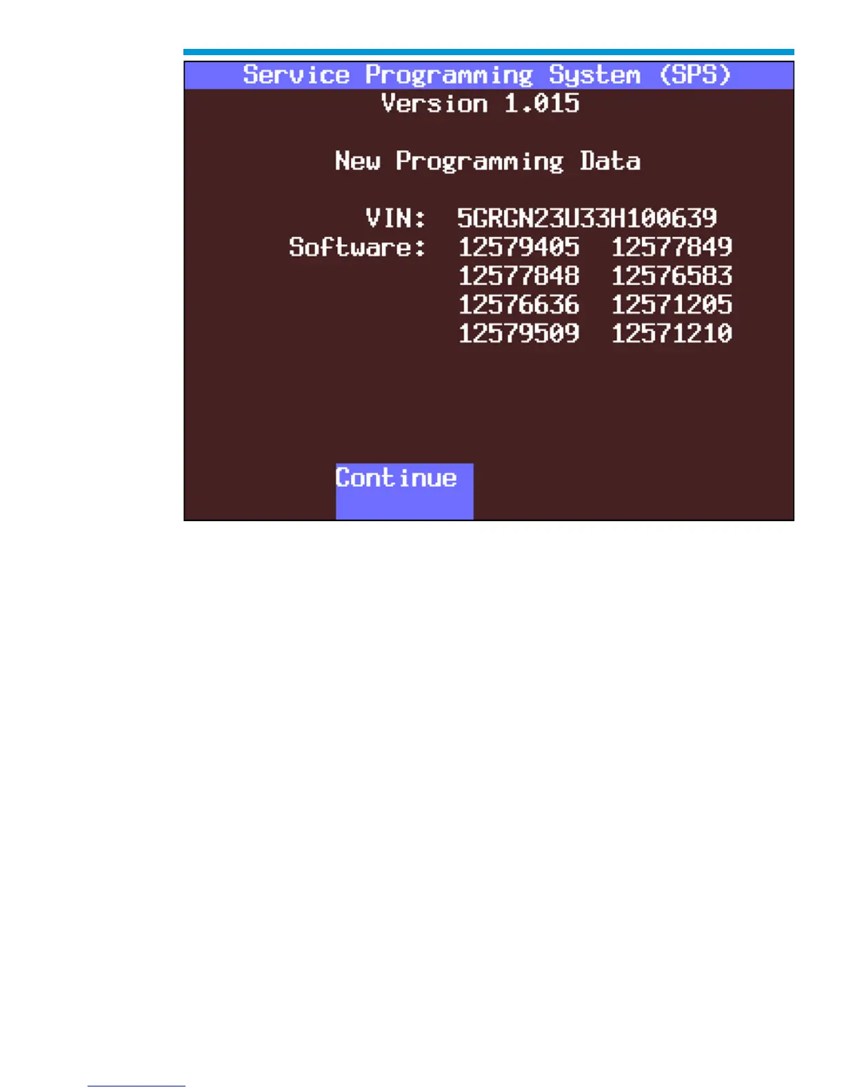 12. At the next Tech2 SPS screen, follow the on-screen instructions: Turn off all power