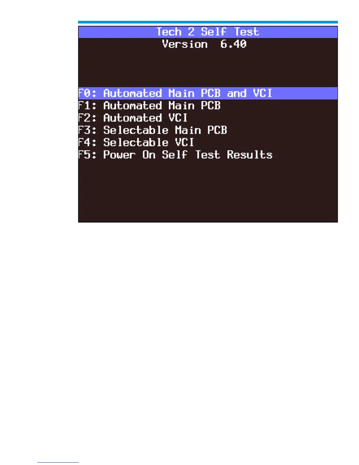 GMC Tech2 - Automated Main PCB and VCI Test Selected on Tech2 Self Test Main Menu