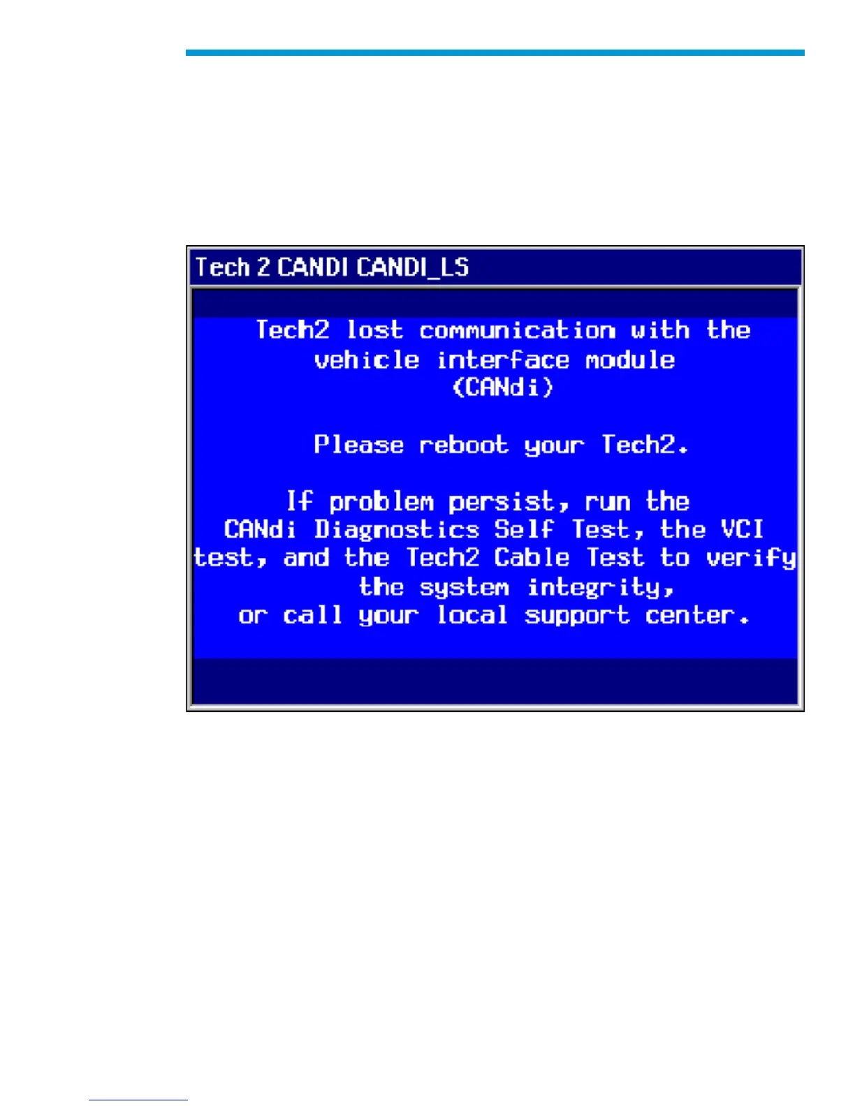 module and the VCI If this occurs, check all Tech2 and CANdi module connections,