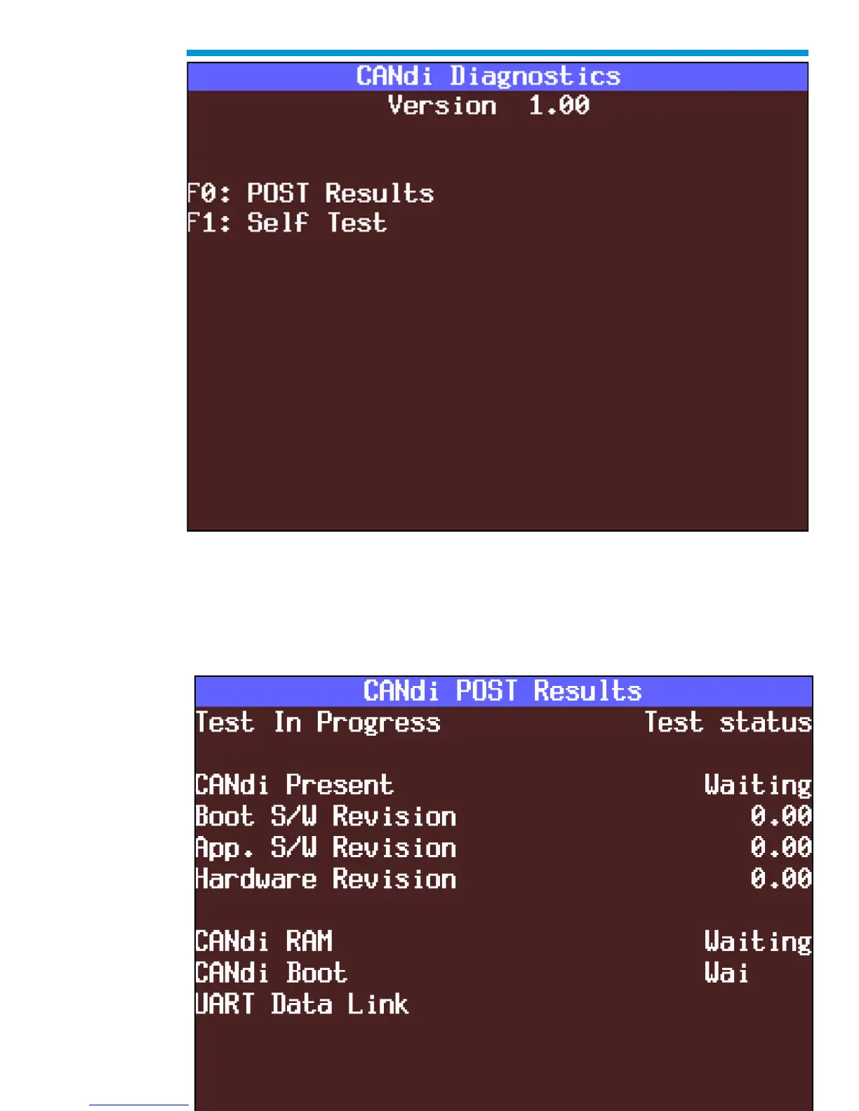 CANdi Diagnostics menu: “POST Results” or “Self Test”