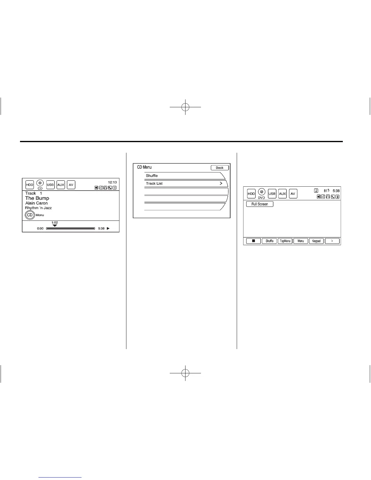 Press the CD Menu screen button