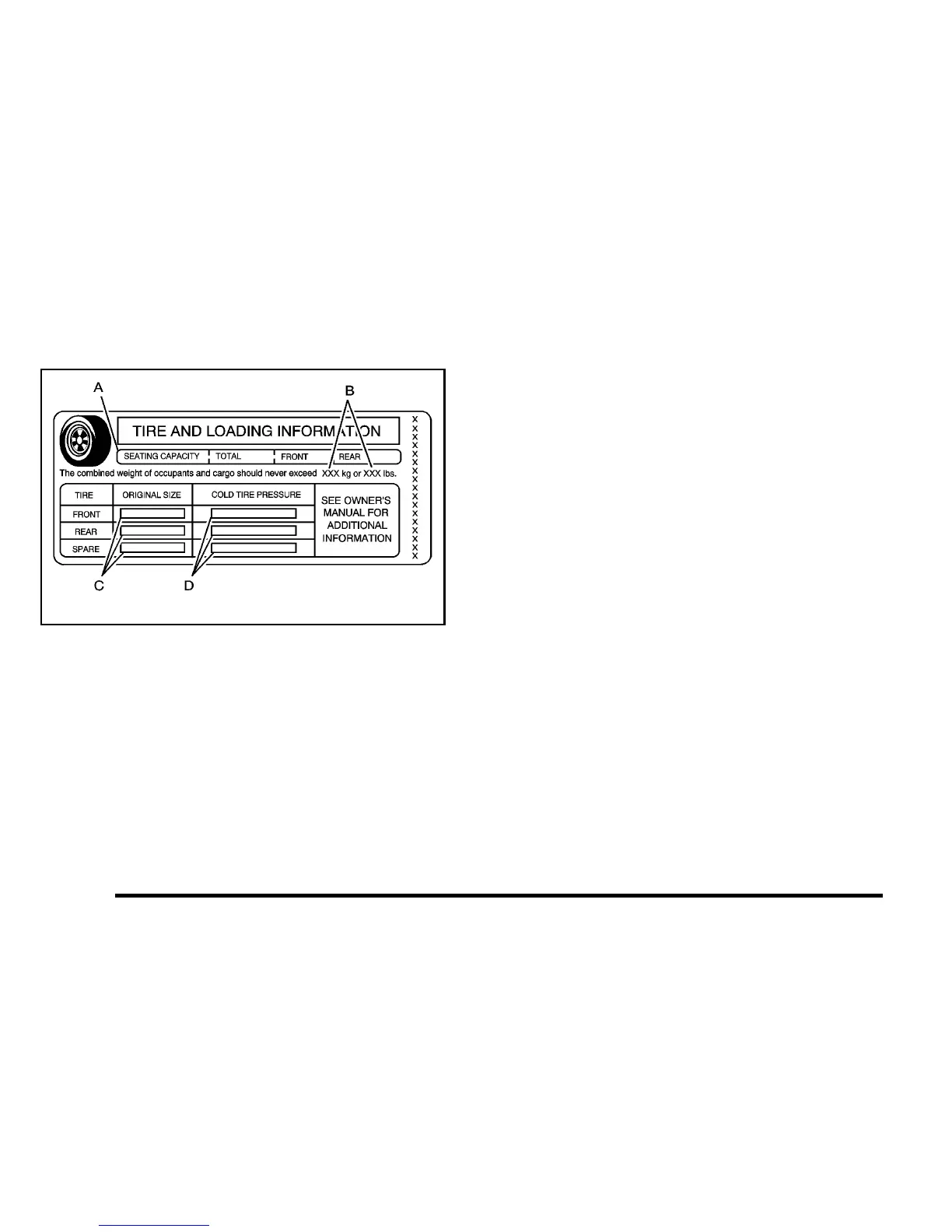 and rear axles. See “Certification/Tire Label” later