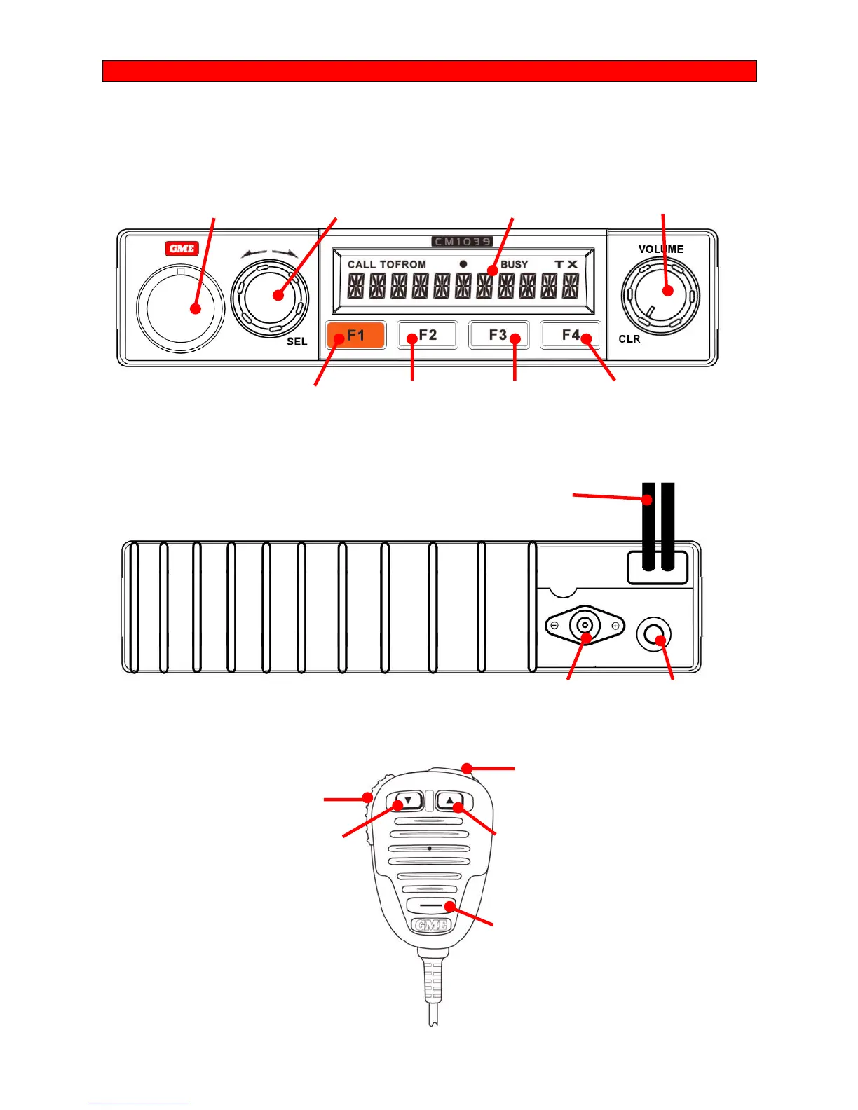 GME CM1039 - Primary Controls; Front Panel; Rear Panel; MC513 BC Microphone