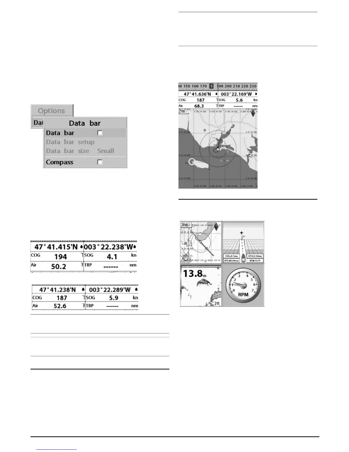The Chartplotter can display up to four windows at the