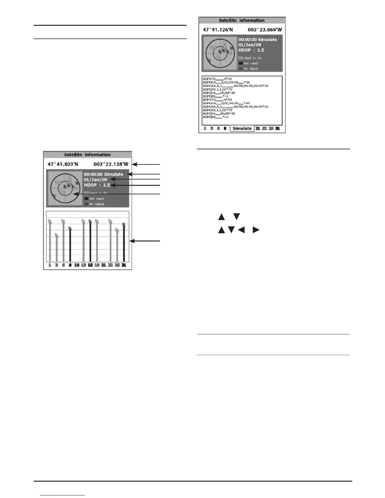 Press ENT to display GPS signal information from GPS satellite