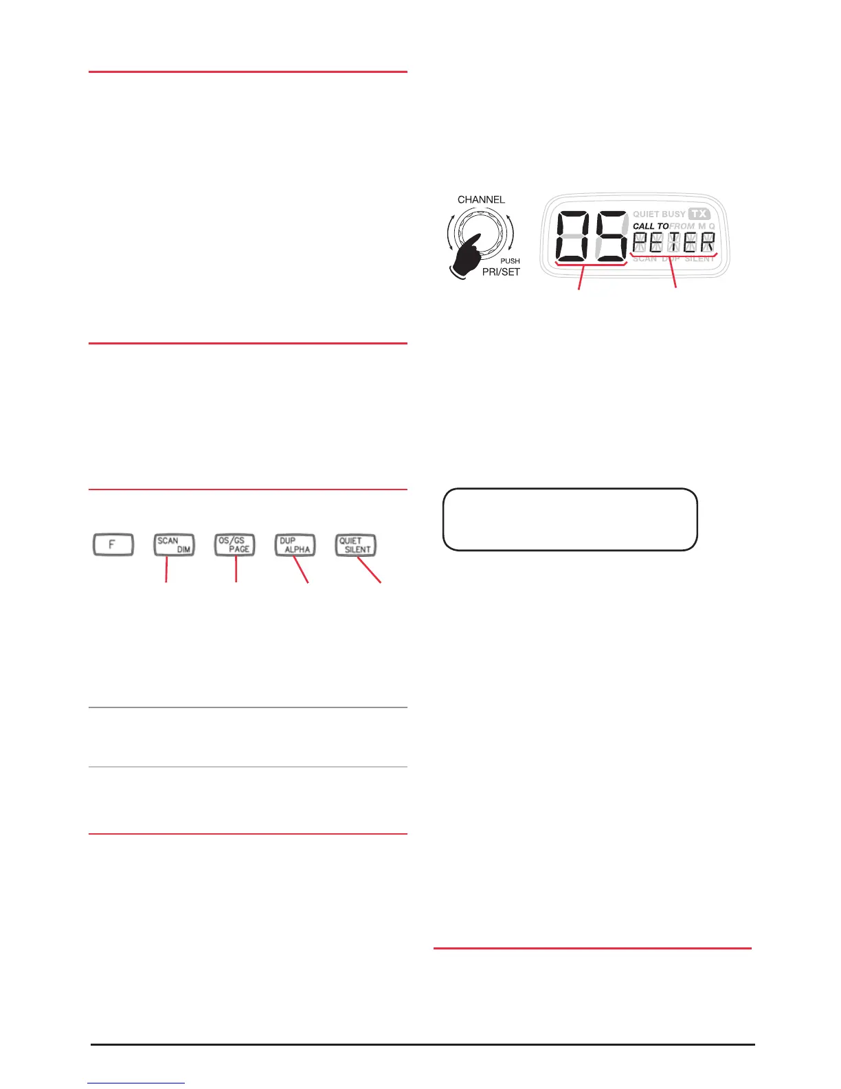 radio's ALPHA display mode selected. To select the ALPHA
