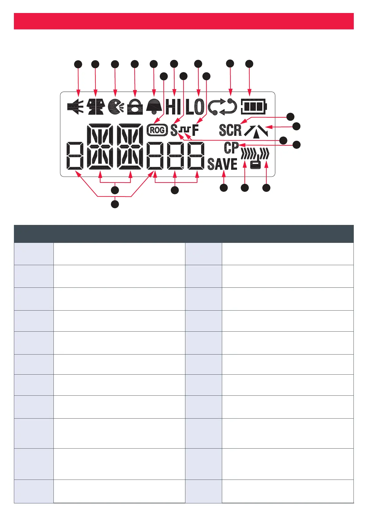 The following table describes the icons on the LCD screen, as labeled in the diagram above.