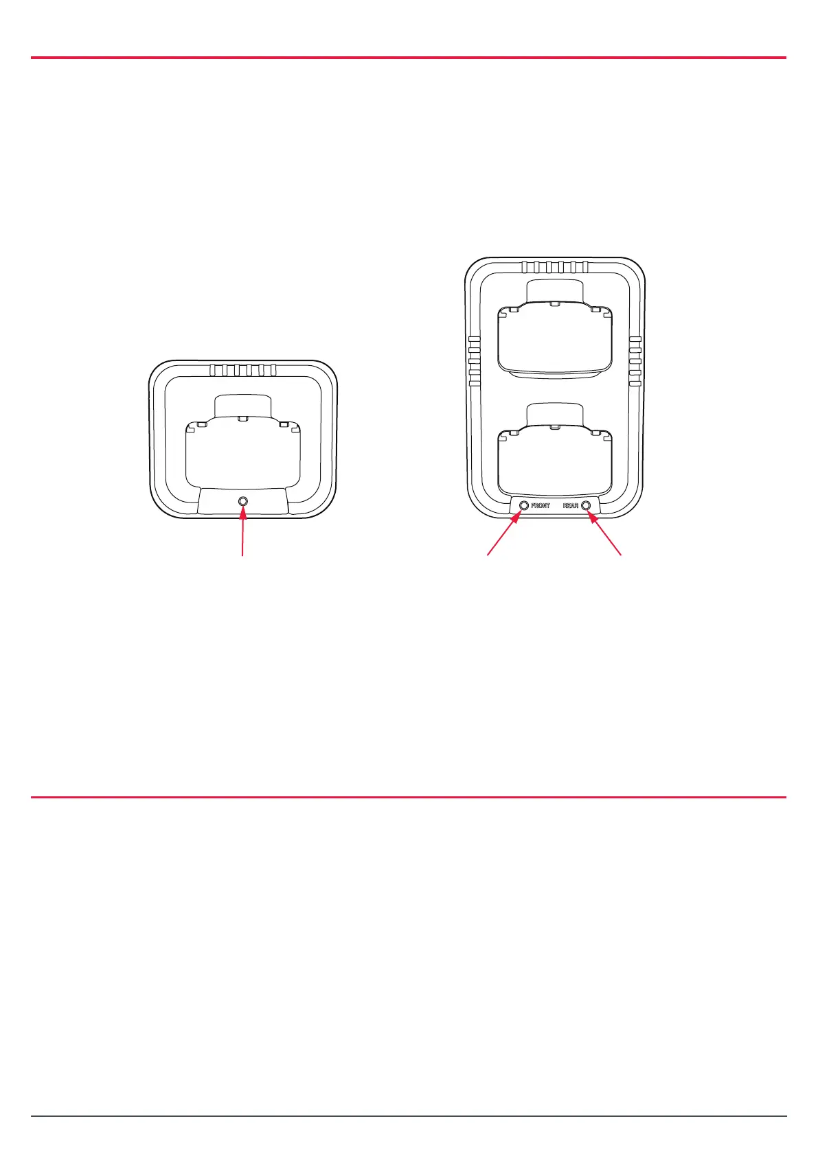 1. Place the radio into the cradle with the battery attached. The LED will light red to indicate
