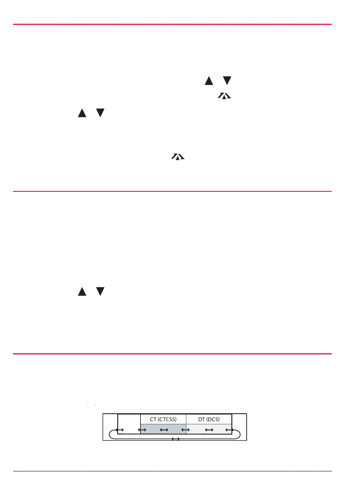 When CTCSS tones are being selected, ‘CT’ is displayed. To access DCS codes, scroll past CTCSS tone