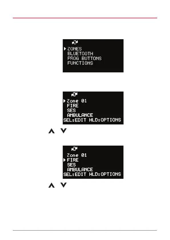 3. Select the desired Zone from the Zone list and hold MENU [HLD:EDIT]