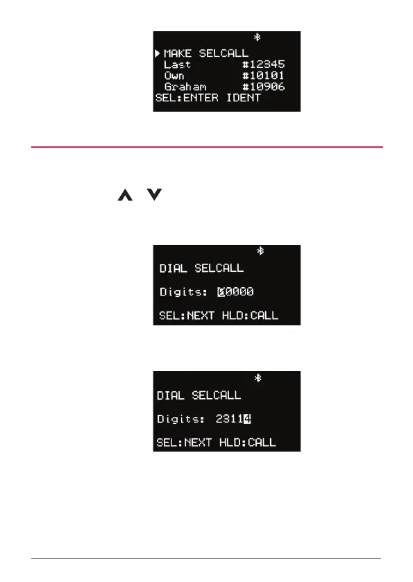 4. Continue until all 5 SelCall digits have been entered. Hold MENU