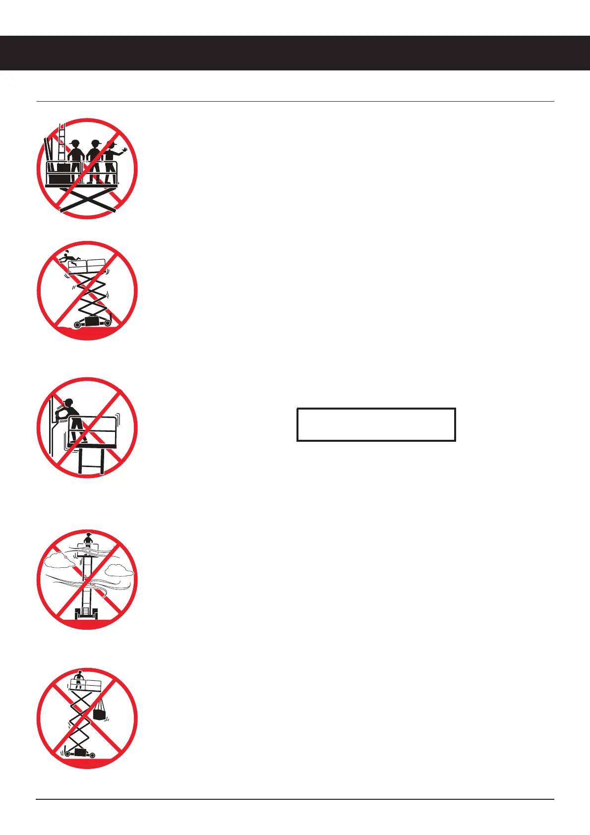 rated machines, DO NOT elevate the platform when wind speeds are in excess