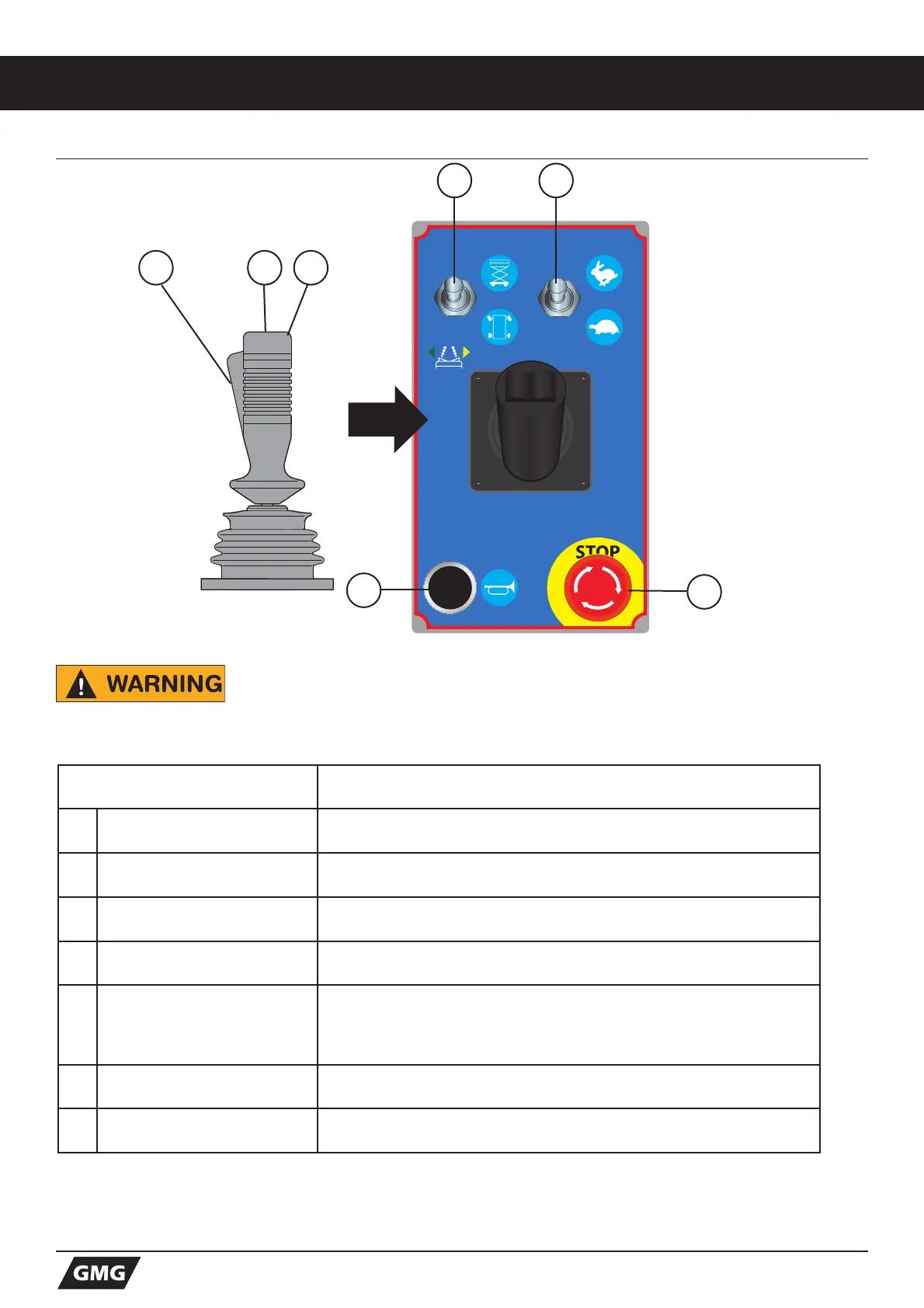 4 Lift/Drive Select Toggle this switch to the UP position for Lift function.