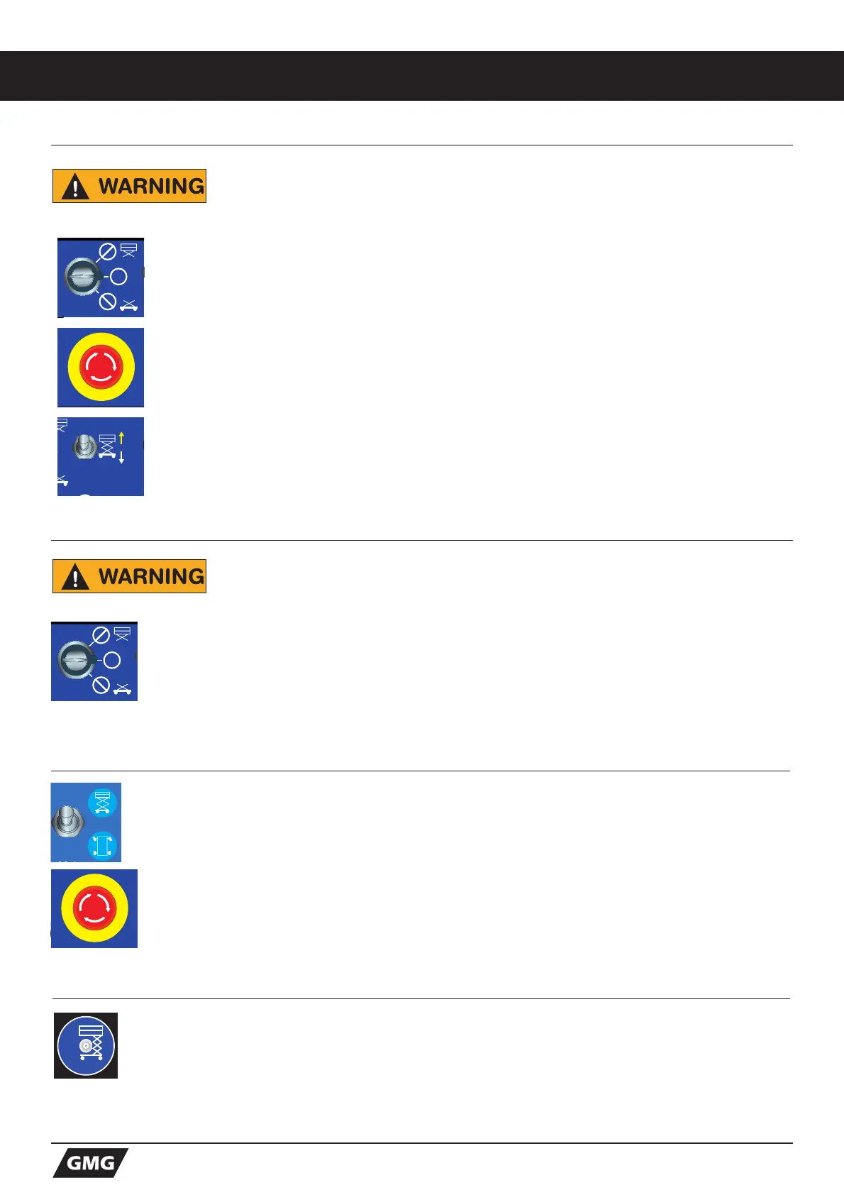 2. Set the EMERGENCY STOP to the ON position at both the lower and platform controls.
