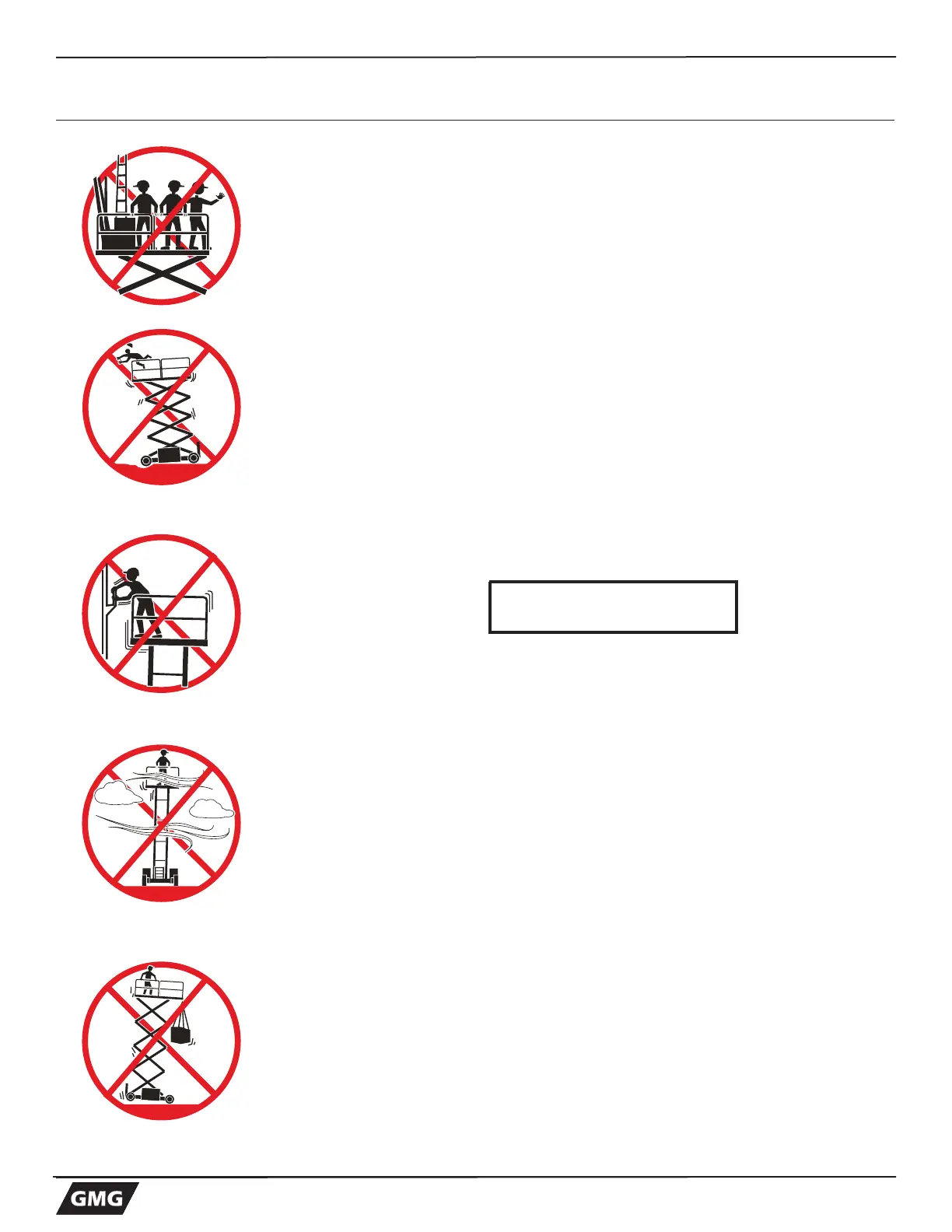 NEVER modify or alter the work platform without written permission from GMG.