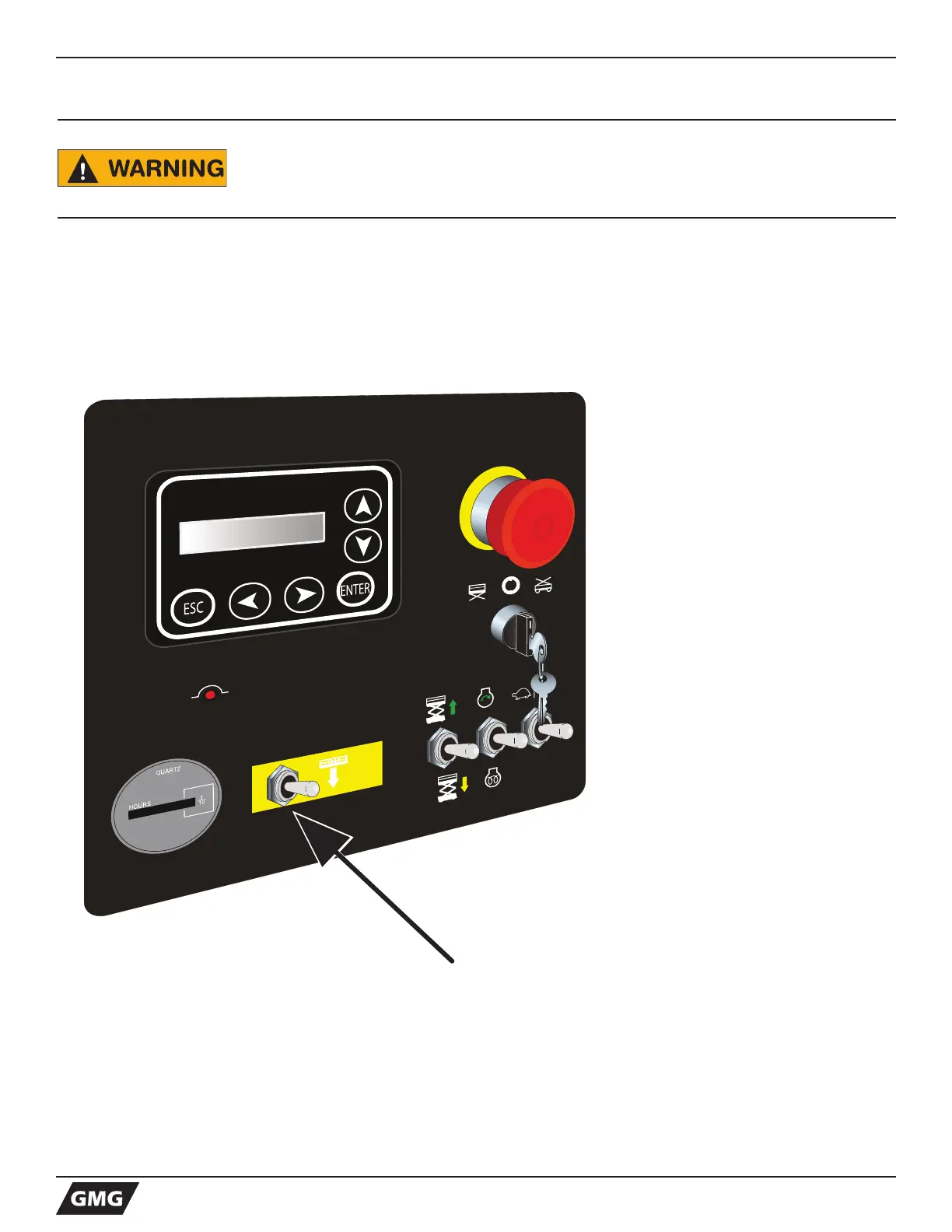 The Emergency Lowering System is used to lower the platform in case of power or valve failure. To lower the