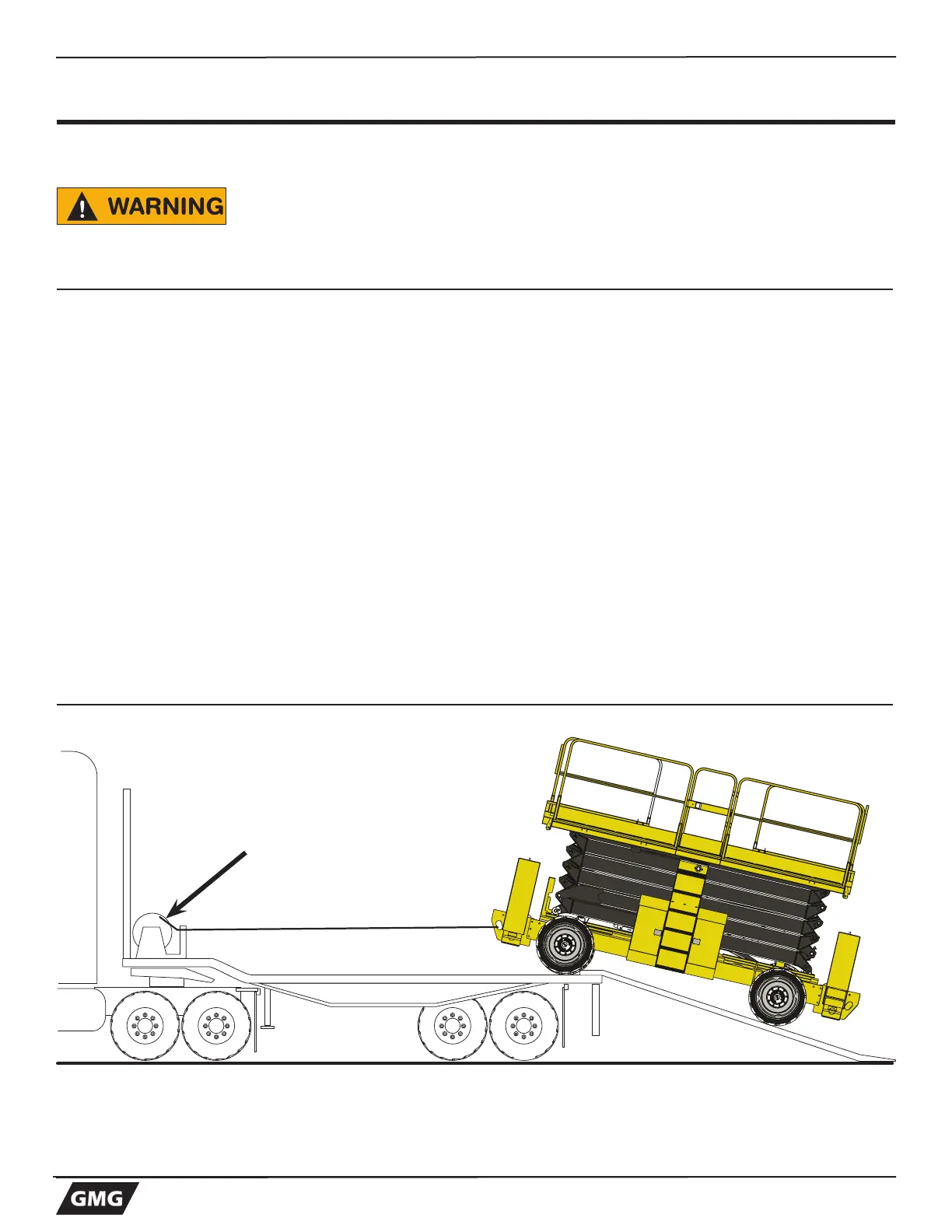 • Carefully drive the machine off the transport vehicle with the winch attached.