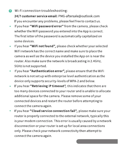 If you hear "WiFi password error" from the camera, please check