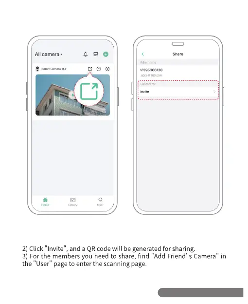 2) Click "Invite" , and a QRcode will be generatedfor sharing.