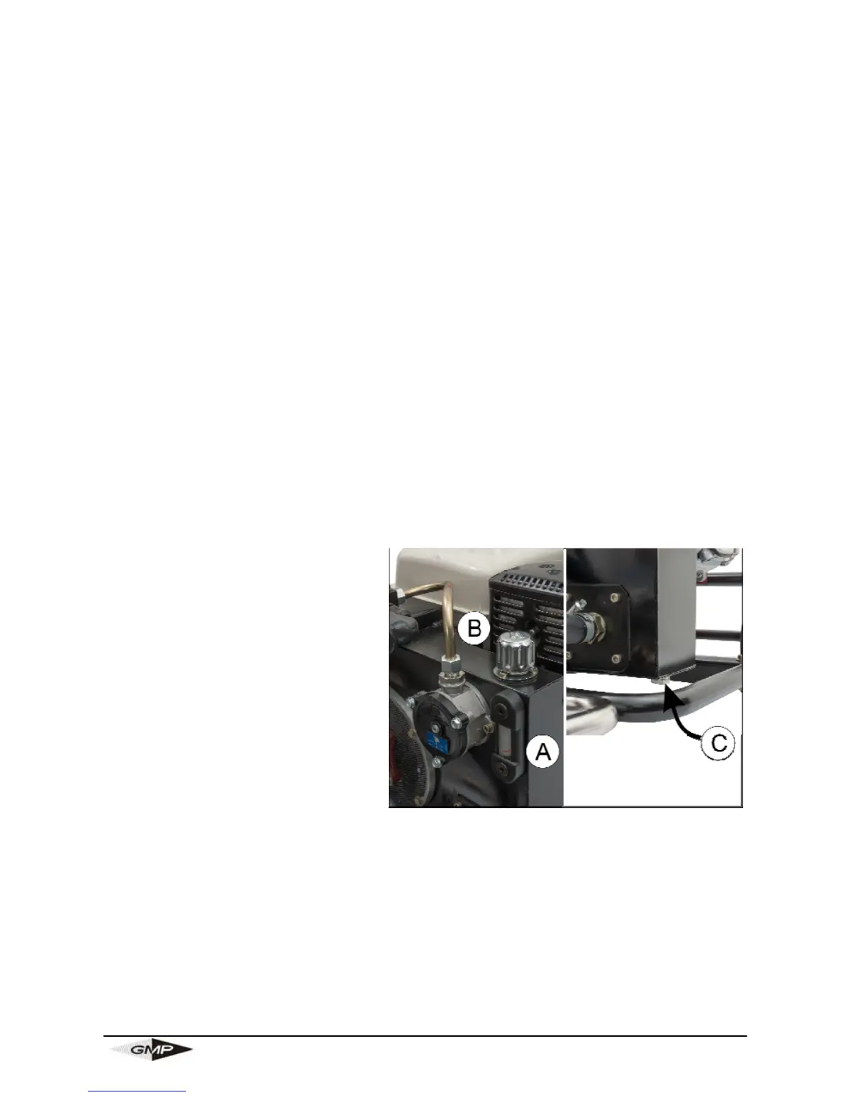 a. Place a container of a suitable size below the tank drain plug C to catch the fluid.