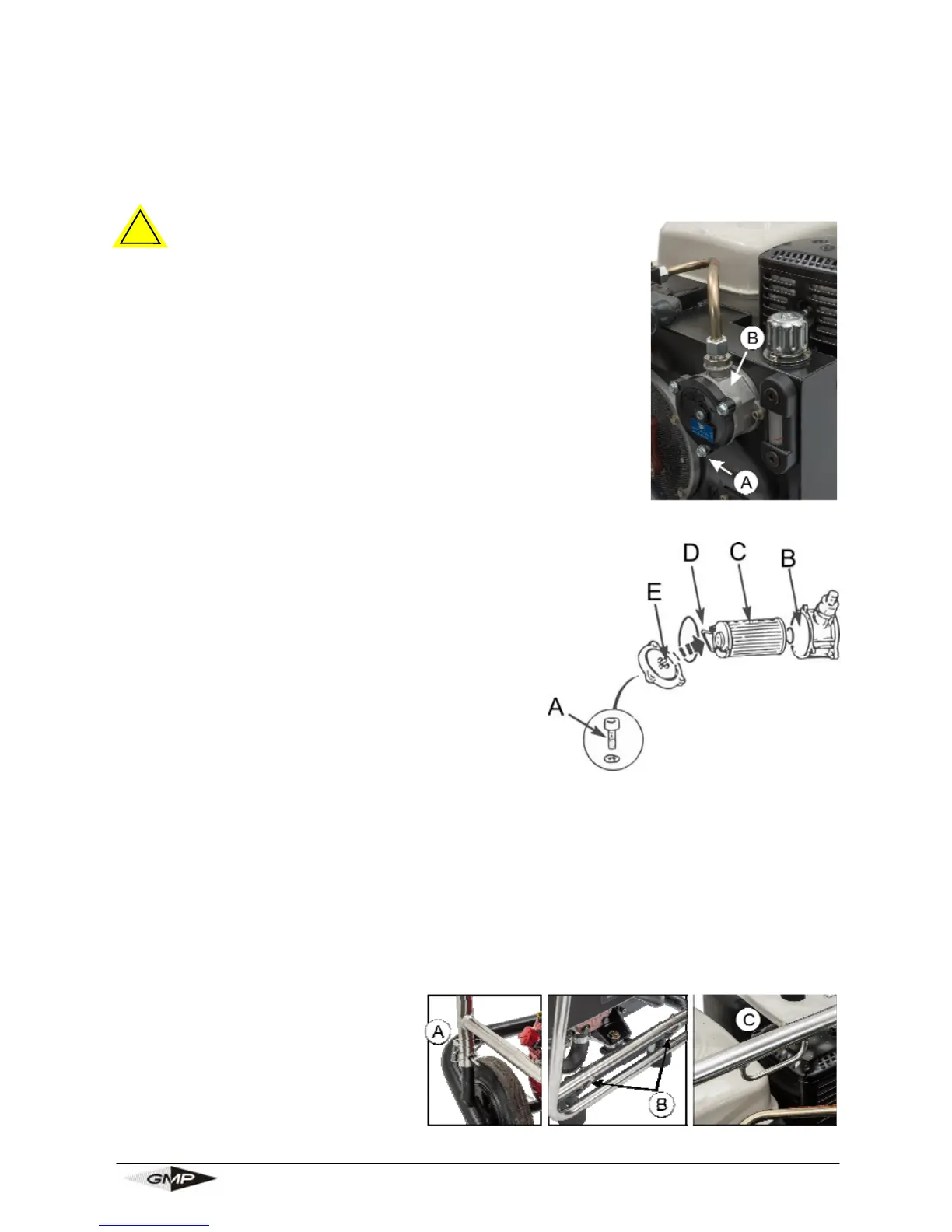 b. Pour fluid through filler until it reaches the required level on sight gauge A.