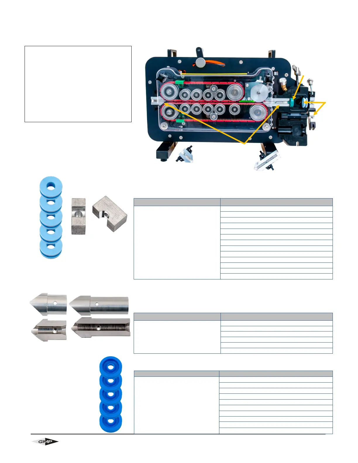 This section lists the appropriate inserts collets etc required for a given cable/duct combination.