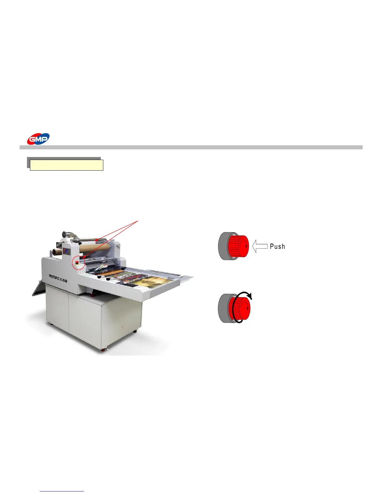 Press the Red button to operate the Emergency Stop Switch.