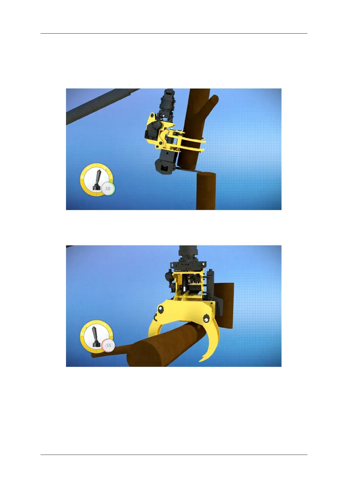 Once a tree has been sawed through, it must be lowered slowly. The grapple frame will start to drop
