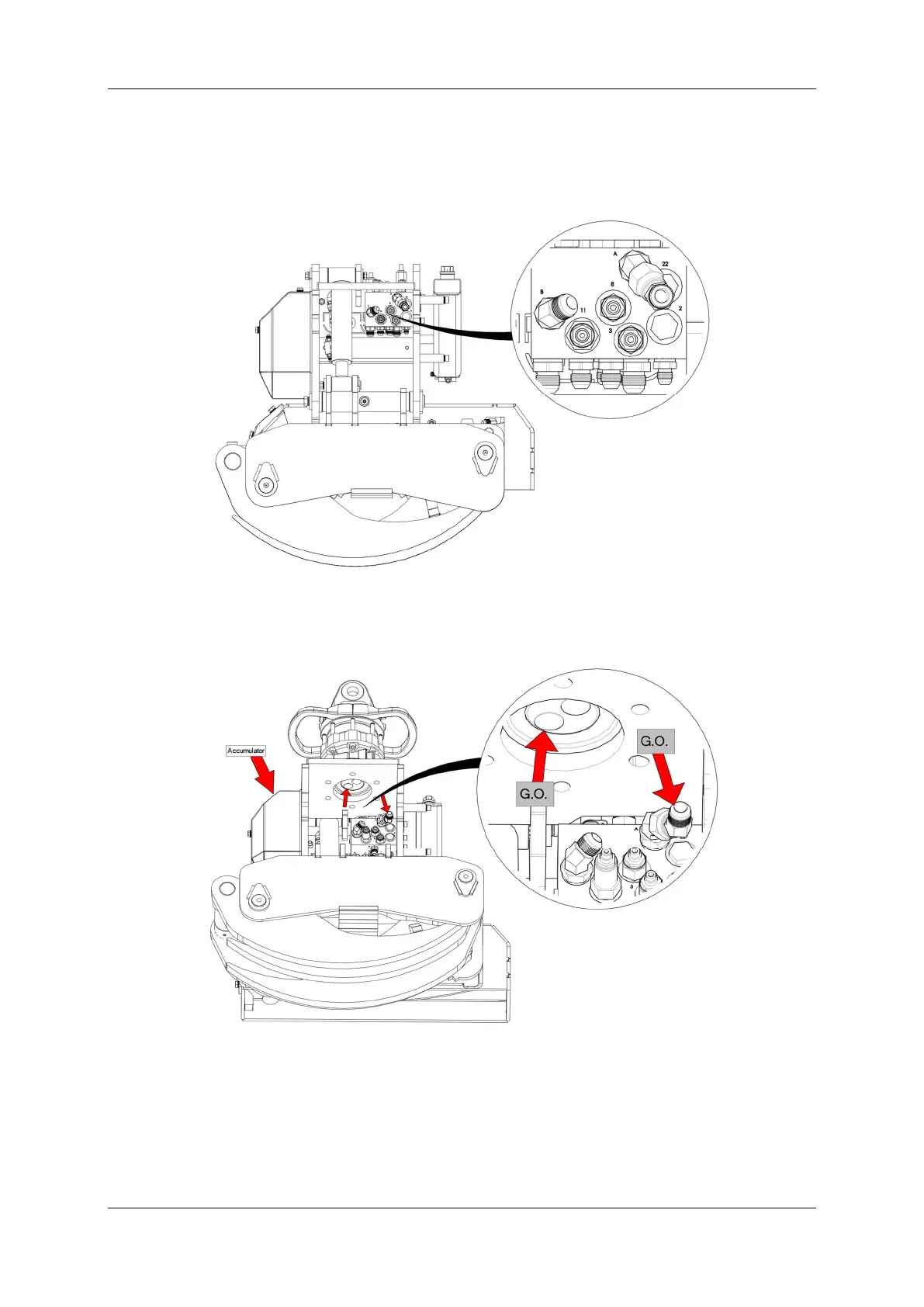 the valve block must be attached to the grapple open ( G.O. ) coupling underneath the rotator. The