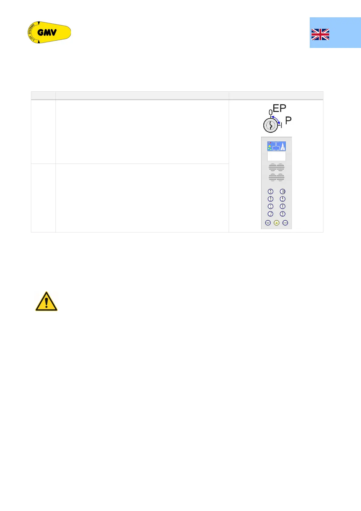 At the end of the reserved use, turn the switch to EP to restart normal operation of the lift. On