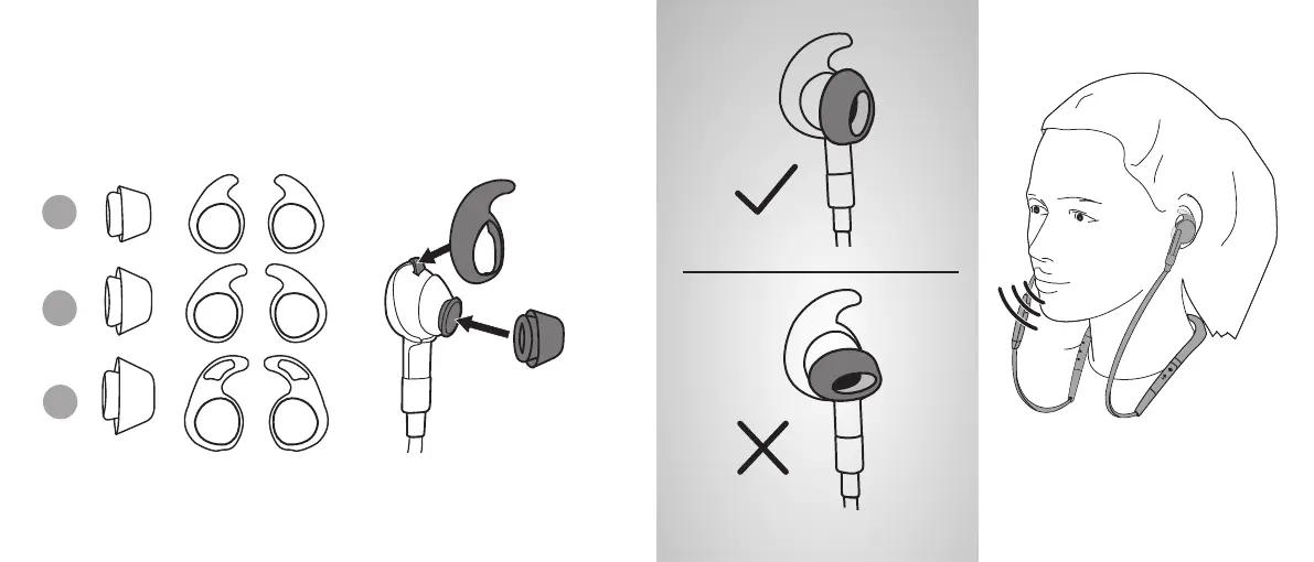dźwięku, należy odpowiednio dobrać rozmiary wkładek do ucha i