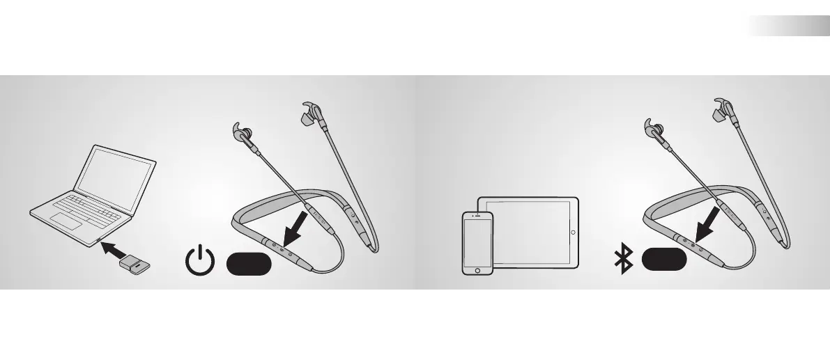 將藍牙傳輸器 (Jabra Link 370) 插入電腦然後開啟耳機電源耳機與