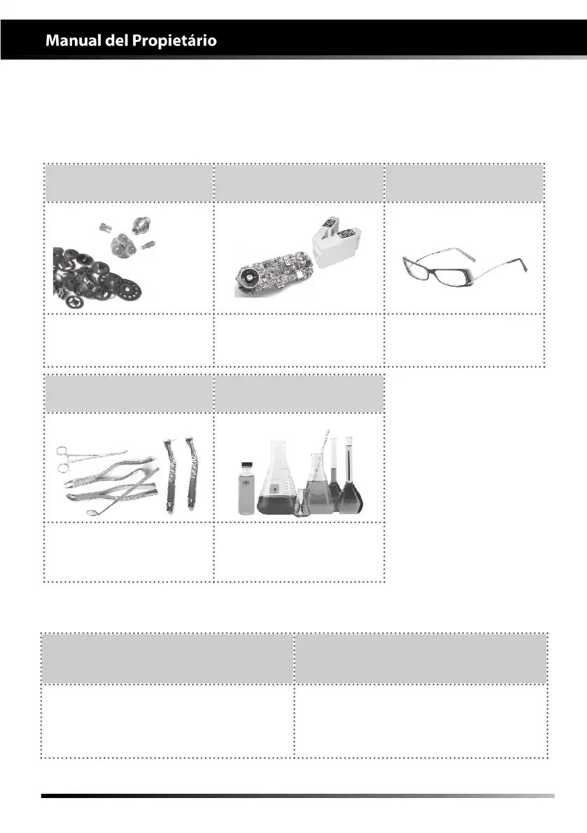 Items no apropiados para la lavadora ultrasónica