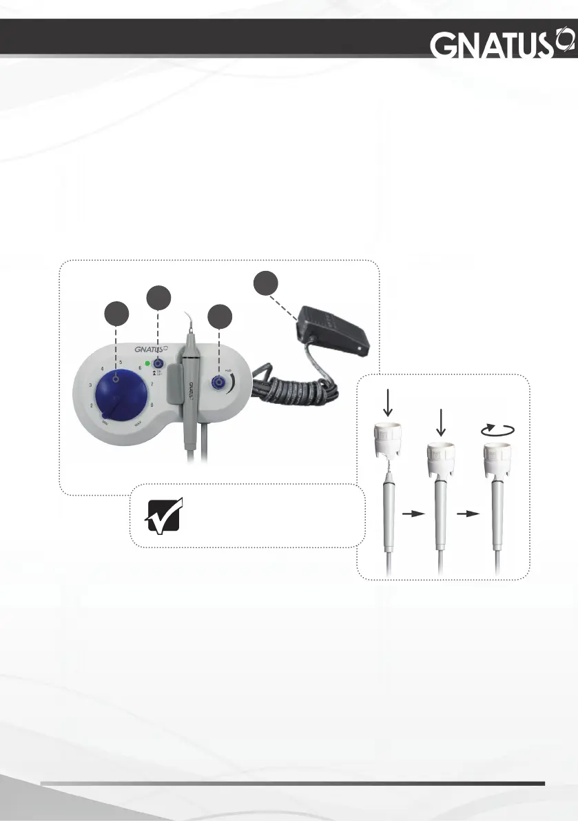 - Retire a peça de mão ultrassom do suporte.
