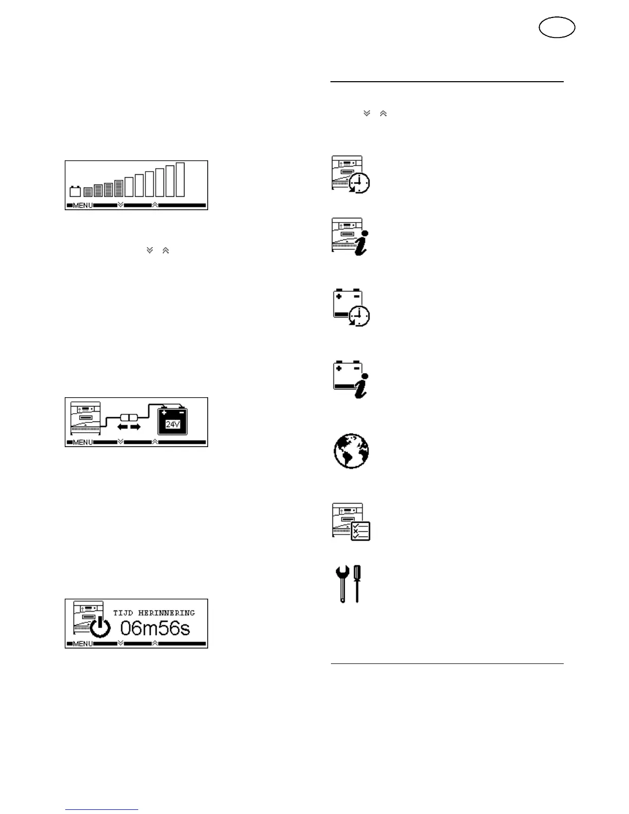 hoe ver de batterij is geladen) en het LCD scherm geeft het