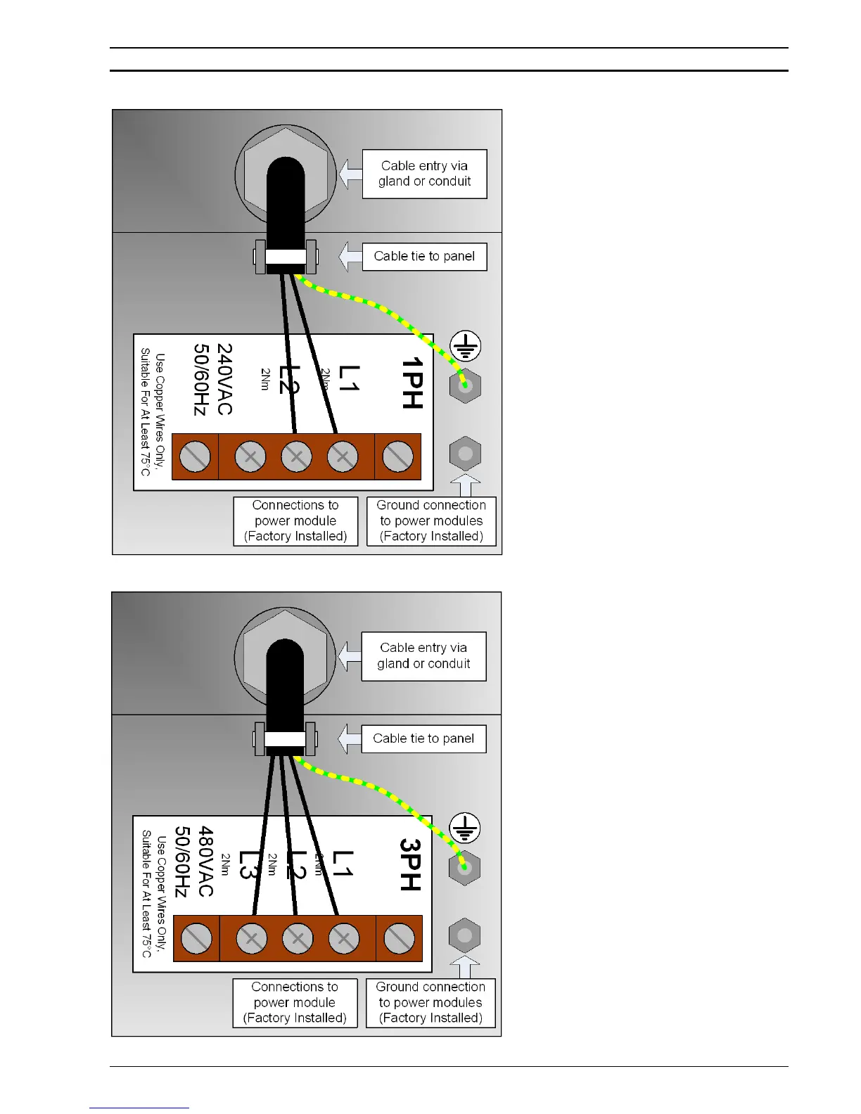 GNB EHF Series - EHP 1-Phase Installation Wiring; EHP 3-Phase Installation Wiring