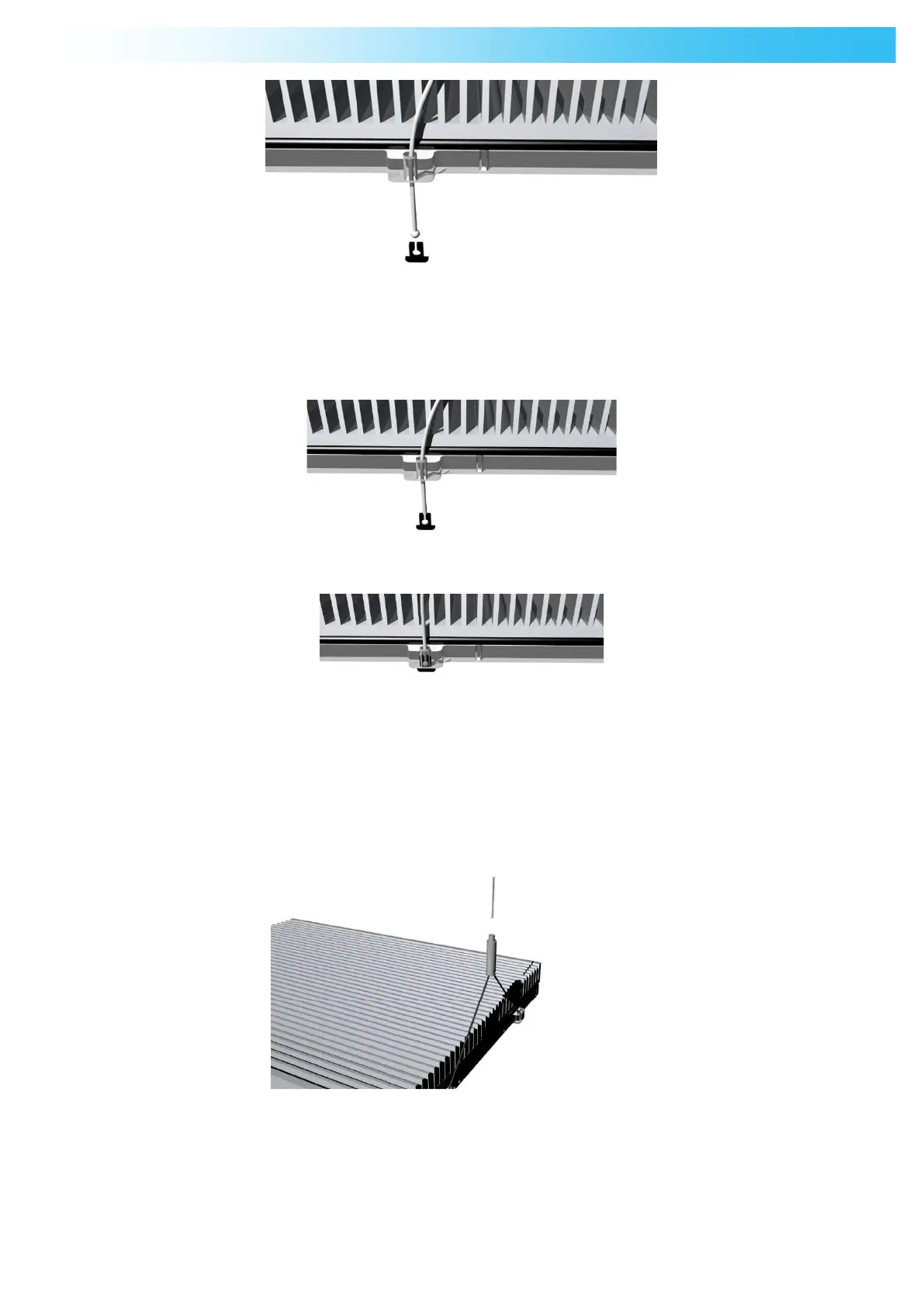 Stecken Sie das Stahlkabel in den Einstellzylinder an der Decke. Durch Drücken auf den oberen Teil des Zylinders wird der Verriegelungsmechanis-
