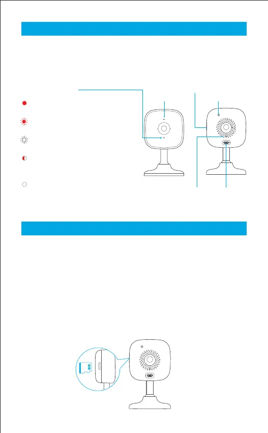status, a lens, microphone, speaker, micro USB port, a micro SD card