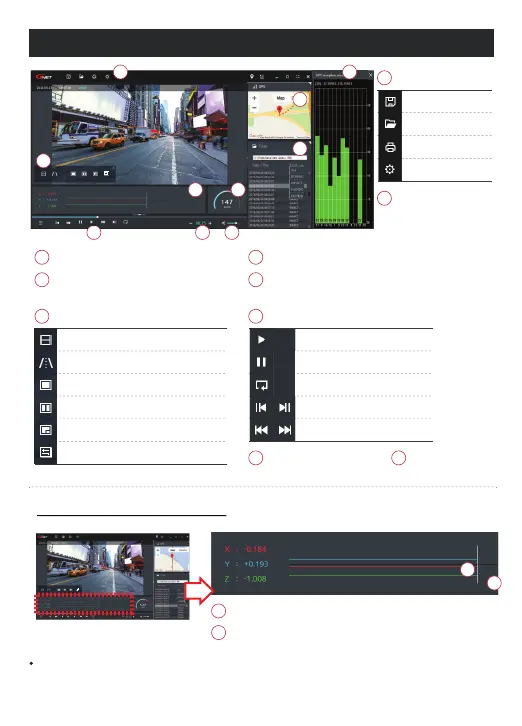 When you play the video, three-dimensional coordinate system information (G-sensor data) on the X-axis(progress direction),