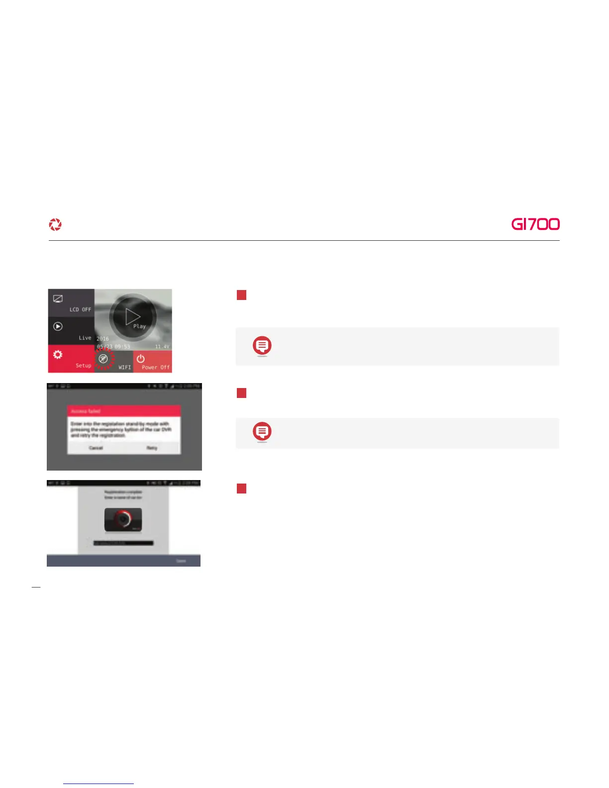Registration process is finished as shown from left image. Register Dash cam name,